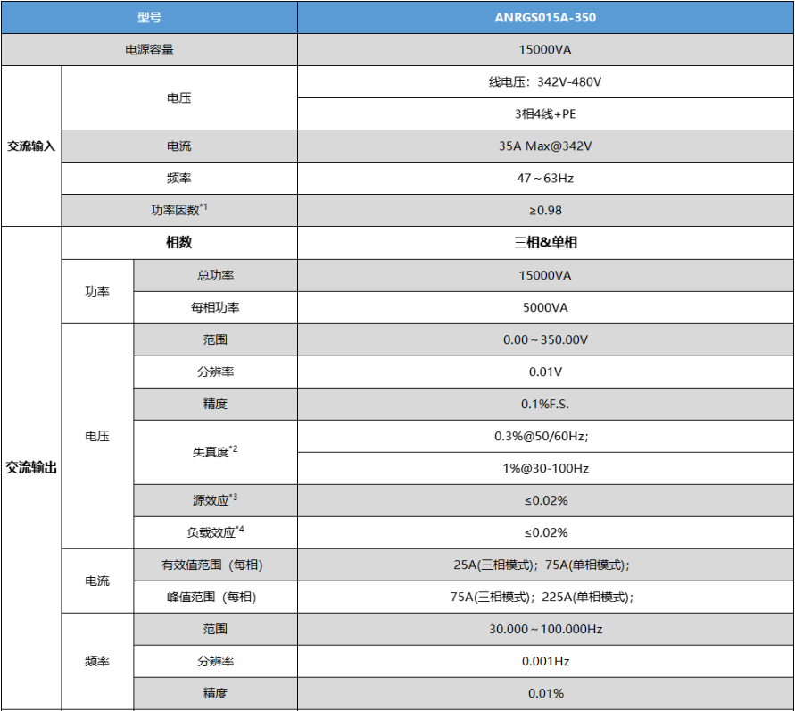 ANRGS系列可回饋電網模擬交流電源產品參數規格: